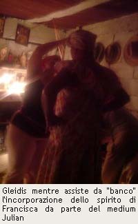 Risposta: il “banco” è colui che protegge “la materia” (n.d.r. il medium o lo spiritista qui vengono genericamente chiamati “materia” nel senso di una materia che incorpora uno spirito) durante la discesa di uno spirito. Il “banco” deve stare sempre attento alla evoluzione della trance affinché non entri qualche spirito malevolo che possa danneggiare il medium stesso o le persone attorno.