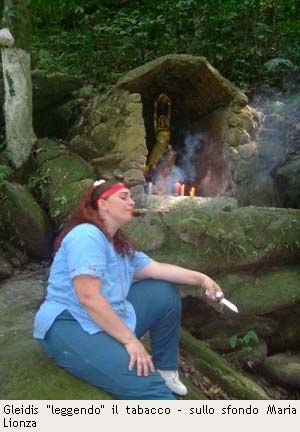 Risposta: Il fumo del sigaro ha la funzione di pulire il corpo e “l’aura” della persona (n.d.r. nella cultura spiritista venezuelana si fa talvolta riferimento a concetti appresi da altre tradizioni spirituali, come l’aura, i chakra, ecc..). Tramite l’osservazione inoltre del sigaro (n.d.r. la lettura del sigaro è una vera e propria tecnica divinatoria) mentre brucia possiamo “leggere” dei segni e dei messaggi su ciò che deve essere fatto prima, sull’andamento dell’operazione o sul suo esito successivo. Il fumare il sigaro per noi è un atto rituale sia di purificazione che di divinazione (n.d.r. i sigari venezuelani sono comunque fatti con tabacco puro non trattato nei quali la presenza di alcaloidi può essere rilevante al punto da facilitare l’induzione od il mantenimento di uno stato non ordinario di coscienza).